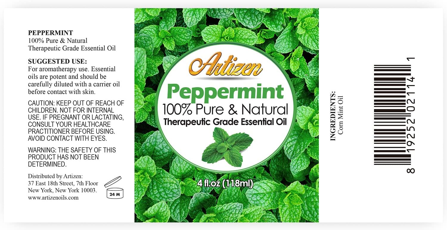 Artizen 4 Fl Oz Peppermint Essential Oil – Pure & Natural Peppermint Oil for Diffuser and Aromatherapy – Includes Dropper