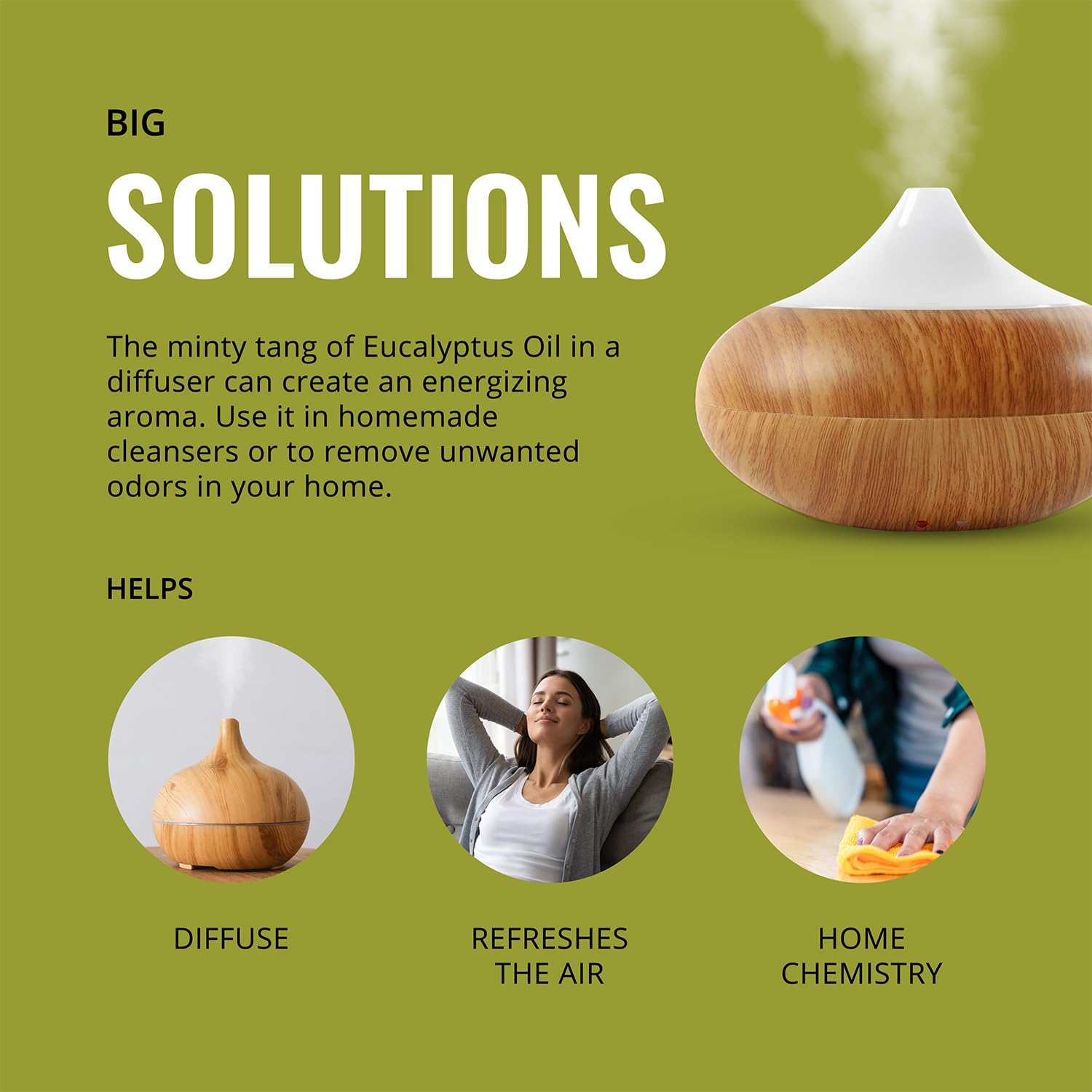 - Versatile Uses: This essential oil for diffusers can be used to make soaps, room sprays, bath bombs, shampoo, and candles. Add a few drops to your cleaning products or diffuser for an enhanced scent. Try mixing with tea tree essential oil or clove essential oil for diverse applications