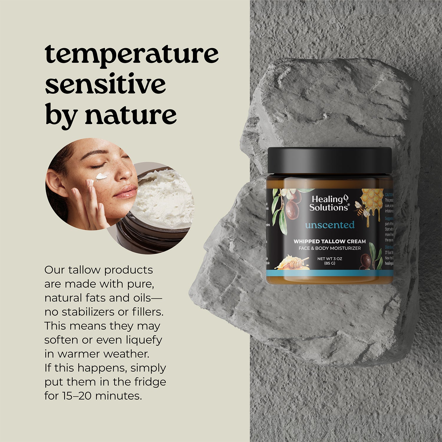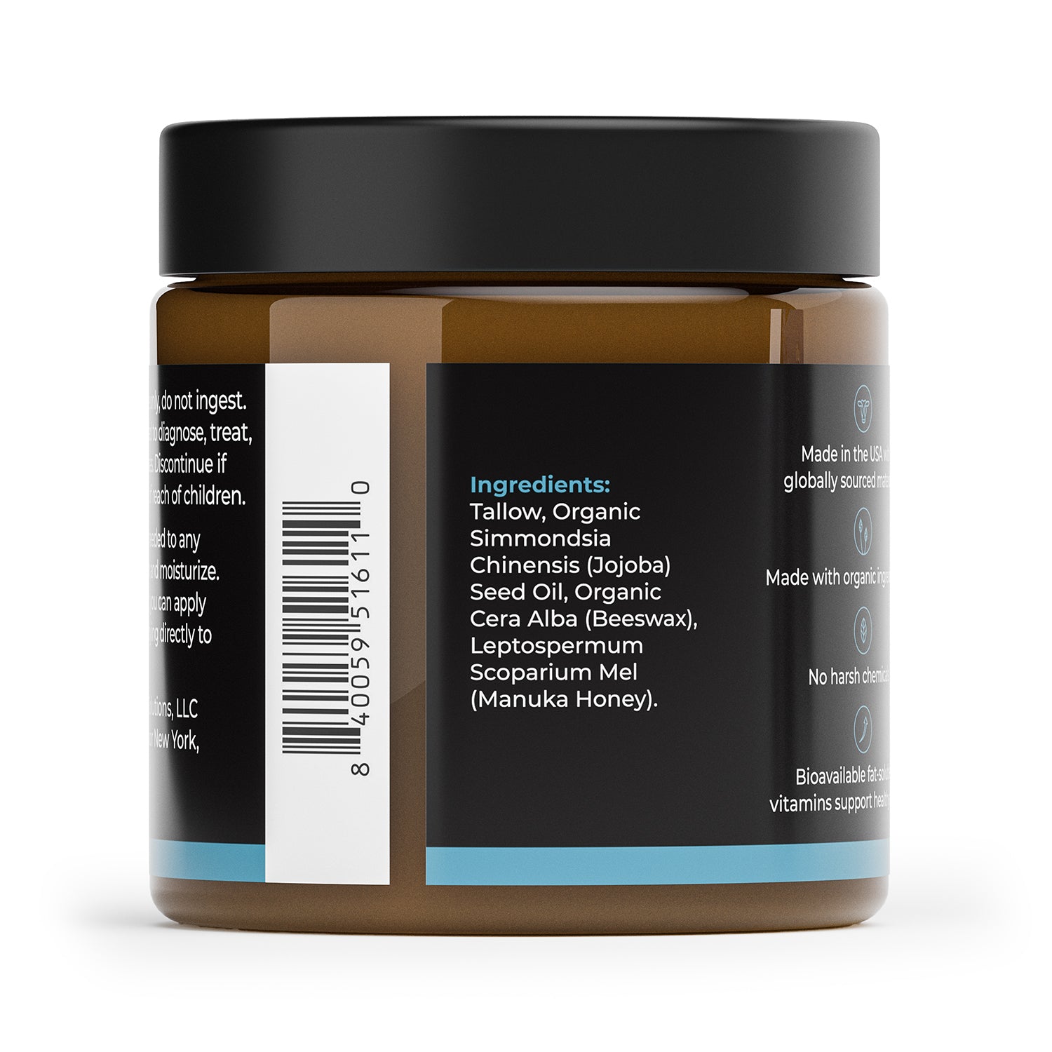 - Clean Ingredients, No Harsh Additives: Made with only four pure ingredients: grass fed beef tallow, organic jojoba seed oil, organic beeswax, and manuka honey. This whipped tallow moisturizer is free from parabens, sulfates, phthalates, petroleum, and synthetic fragrances. Tallow melts above 95°F—if soft, refrigerate 15–20 mins. Slight changes in color or aroma may occur between batches that reflect the natural quality of our ingredients.